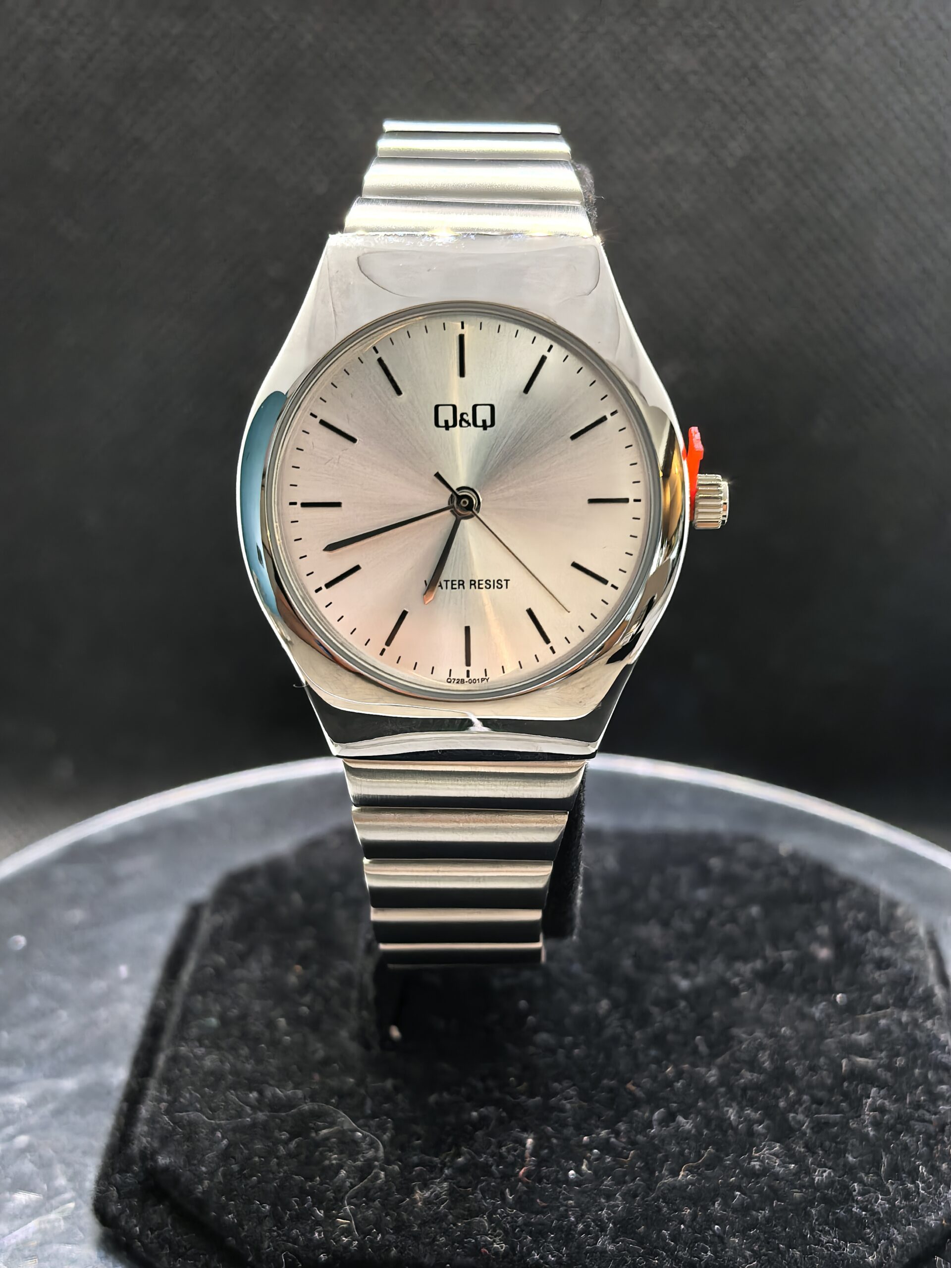 Tipo: Reloj de pulsera de cuarzo Estilo: A la moda y casual Genero: Femenino Marca: Q&Q Correa: Acero Inoxidable Cristal: Mineral Longitud banda: 19,5 cm Peso: 62 Gr Waterproof: 3 BAR Caja de regalo: Si